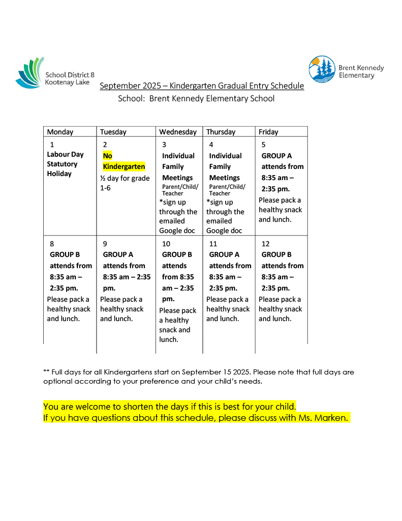 We look forward to welcoming your child to kindergarten! On this page you will find a sample gradual entry schedule and a social story you and your child can read together to help prepare you both for the new experience of kindergarten!